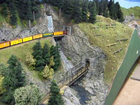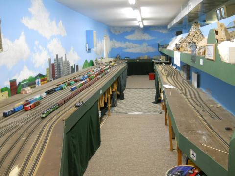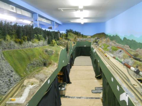 LSMRR is a point to point single track main with passing sidings and reversing loops on each end. It is a bi-level permanent layout with a 2% grade. Digitrax DCC is used. NMRI Signal system. Dispatcher in separate room with layout monitor.