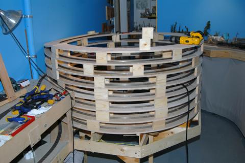 This Lenz DCC-powered Sugar Pine Lumber Company/Minarets & Western Railway prototype-based layout models the company's woods-to-mill and mainline interchange logging company operations circa September 1927. It features double deck construction, dual staging yards, a helix, code 70 and 55 track. The layout is all steam with some sound units.