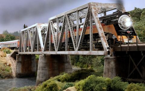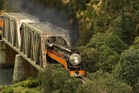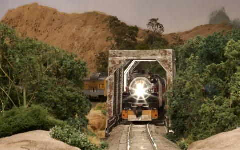 HO Multi-deck mushroom design depicting the Southern Pacific Siskiyou Line of southern Oregon in the 1980s. Uses NCE wireless DCC for control, and covers the